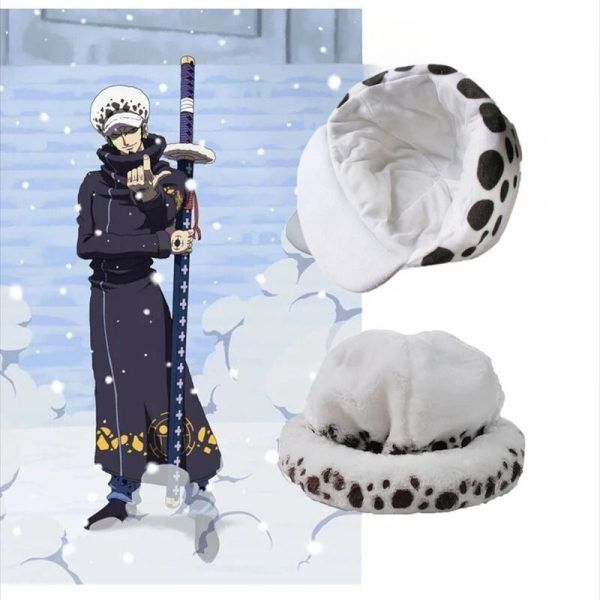 - Couleur : Blanc dominant avec des taches pointées noires, reprenant le design unique du bonnet de Law.