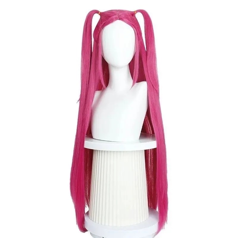 Avec sa chevelure rose intense à couettes hautes, la perruque incluse apporte la touche finale à votre transformation. Douce, résistante à la chaleur et facile à coiffer, elle assure un rendu réaliste pour les photos, vidéos ou performances.