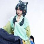 Les teintes vert menthe et bleu profond évoquent la fraîcheur et la sagesse de Maomao, tandis que les détails brodés apportent une touche artisanale haut de gamme. Cette tenue capture à la perfection la dualité du personnage : douceur apparente et force intérieure.