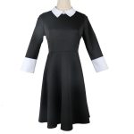 Costume Cosplay Wednesday Addams – Robe Noire Classique Col Blanc